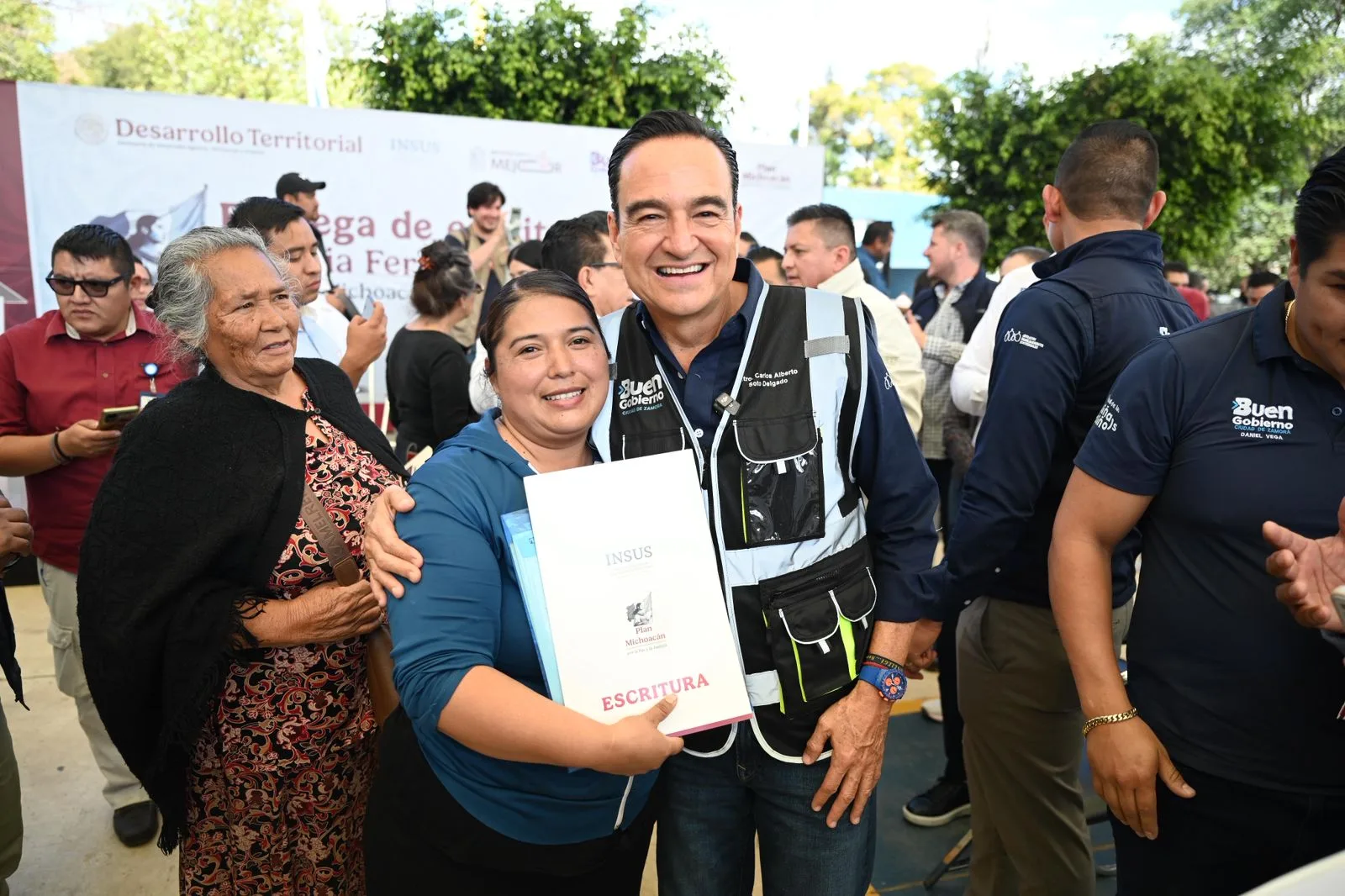 Carlos Soto entrega certeza jurídica a 377 familias de la colonia Ferrocarril en Zamora