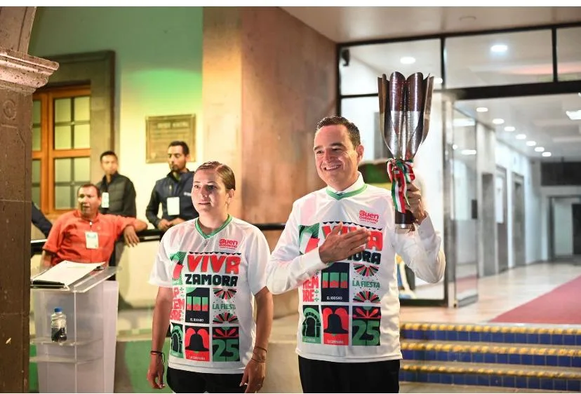 Cientos de zamoranos se congregaron en la plaza principal para ser parte de esta tradición cívica, que inició con la llegada del Ejército Insurgente y el encendido del fuego simbólico procedente de Corralejo, Guanajuato. Este fue portado por la directora de Deportes, Alejandra Garibay, y recibido con una Guardia de Honor por el alcalde.